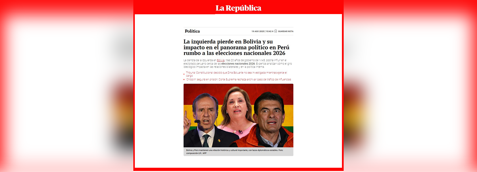 Alonso Cárdenas, docente de la carrera de Ciencia Política de la Universidad Antonio Ruiz de Montoya (UARM), participó en un informe de La República. En su intervención, analizó las elecciones bolivianas y su impacto en sus relaciones bilaterales con el Perú.